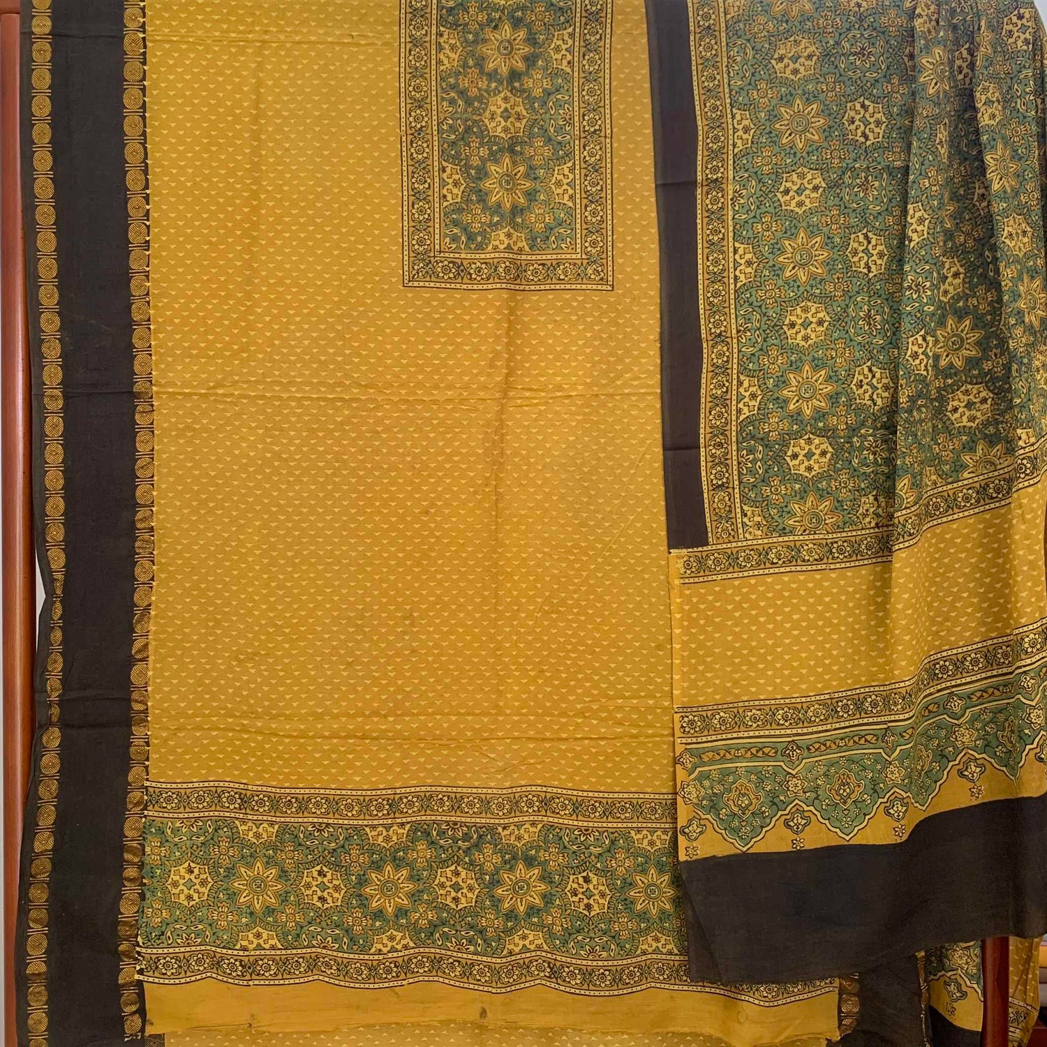 Ajrak Sungudi 2 Piece Salwar Suit Material, Mustard