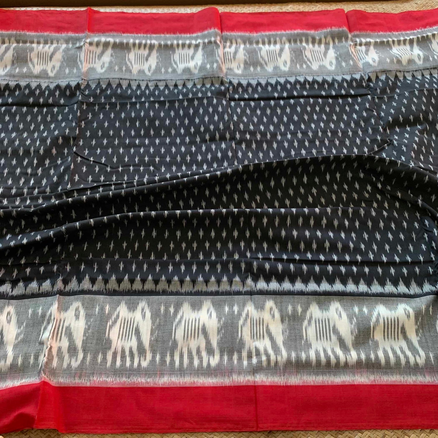 Black Pochambally Ikkat Hand Woven Cotton Saree