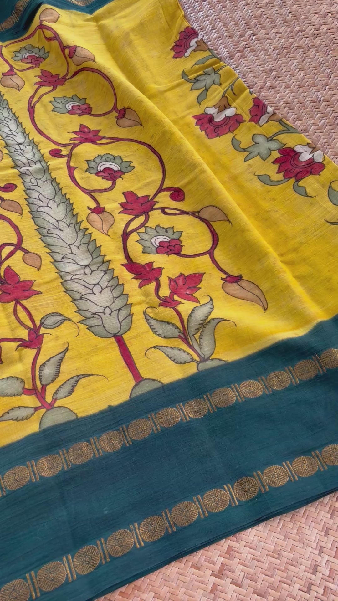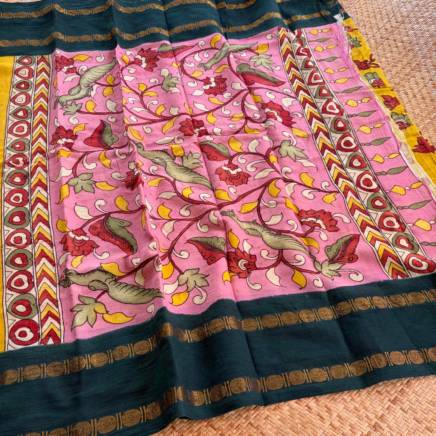 Villvam Kalamkari Hand Painted on a Madurai cotton saree.