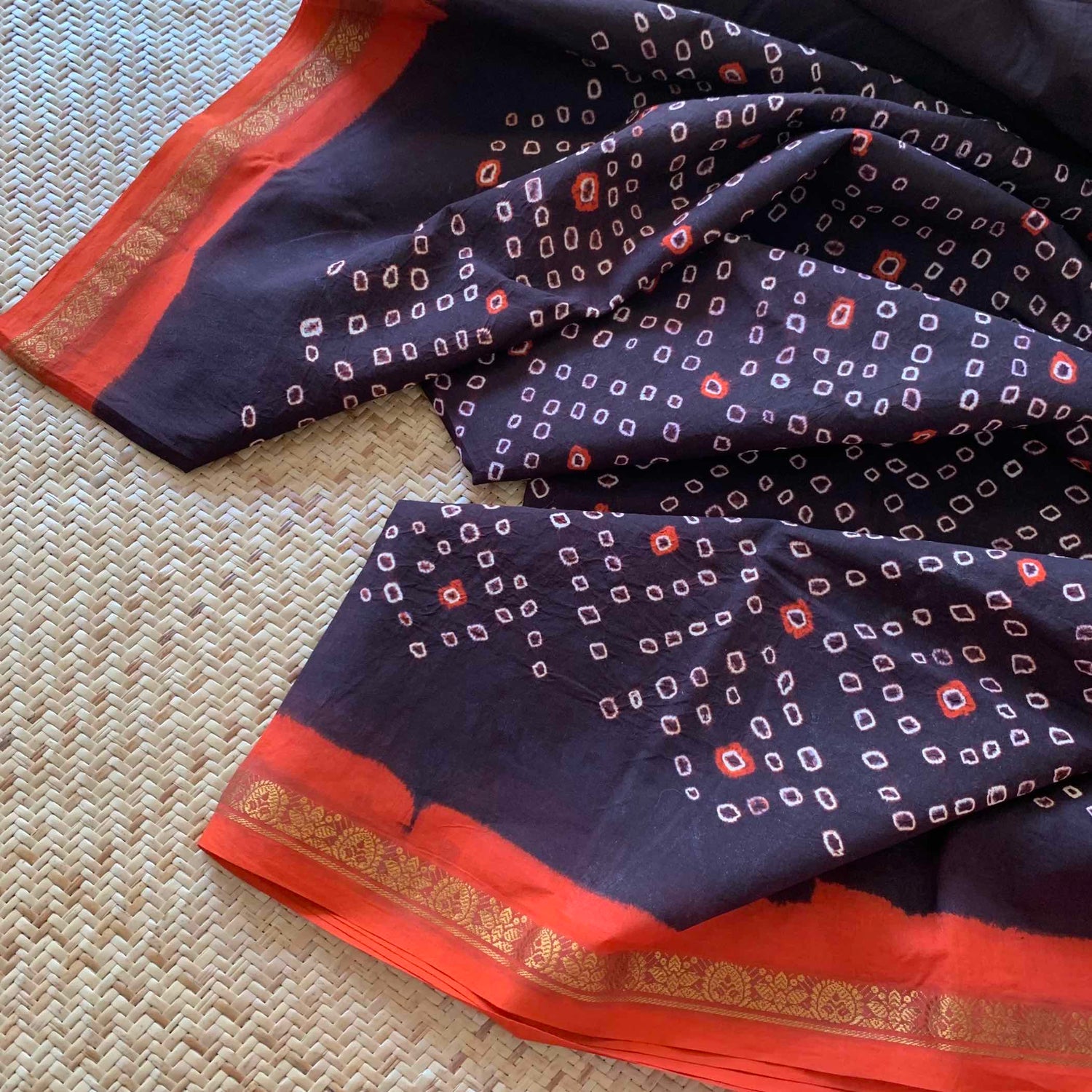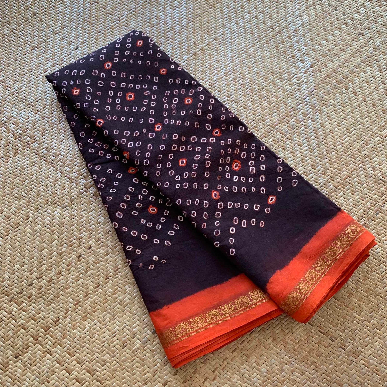 Deep Brown Saree, Hand knotted Sungudi On a Hand woven Cotton saree, Kaikattu Sungadi