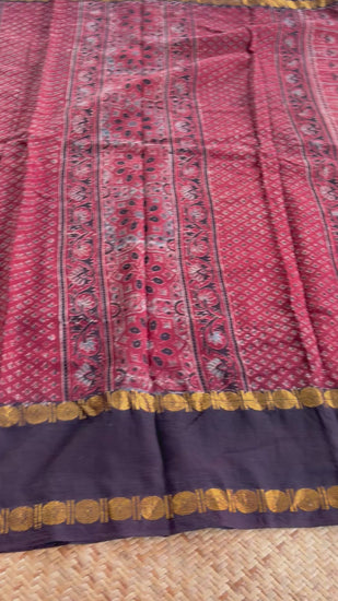 Star Madder, Ajrak Hand Block Printed On Madurai Cotton Saree With Zari