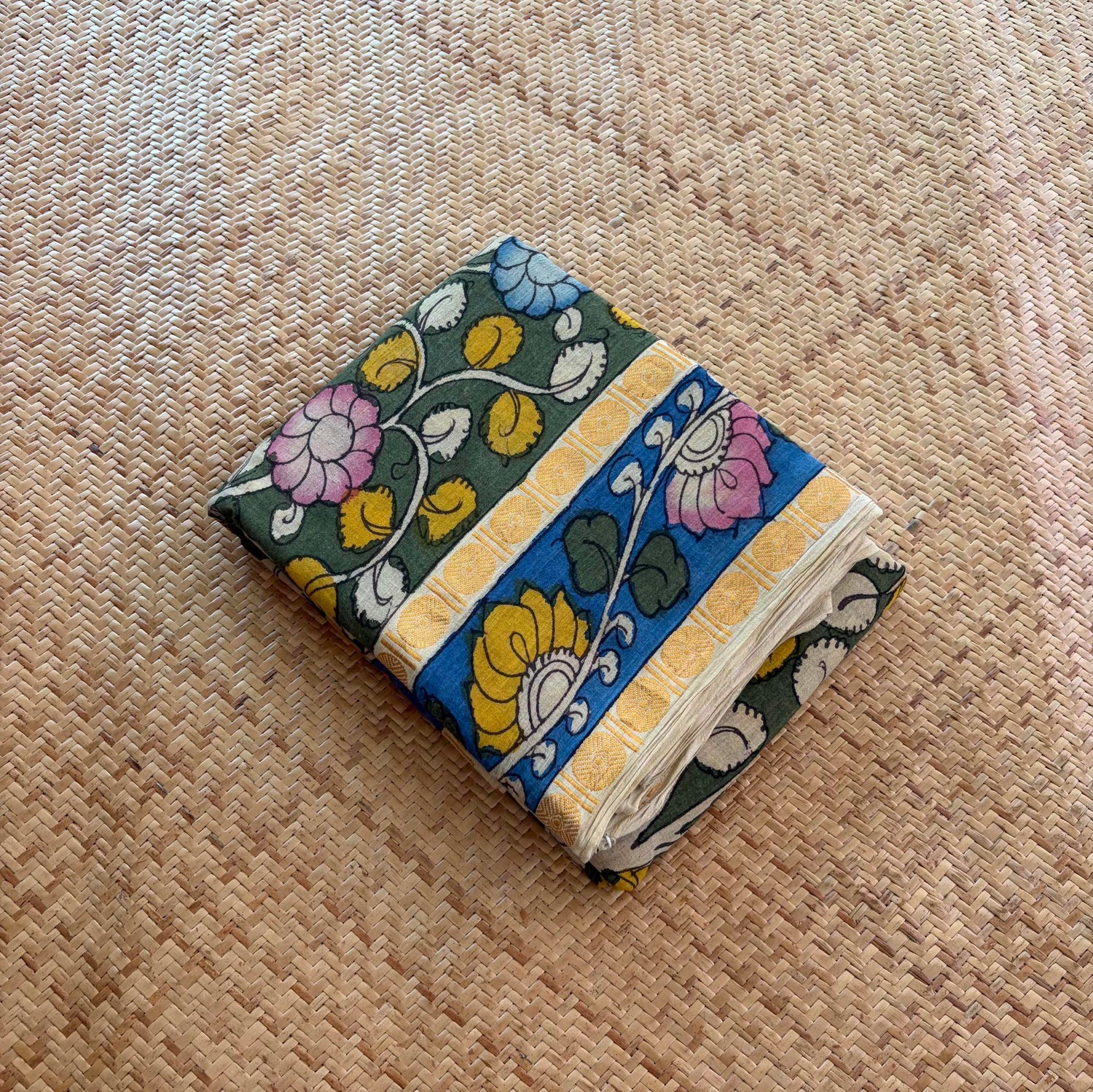 Villvam Kalamkari Hand Painted on a Madurai cotton saree.