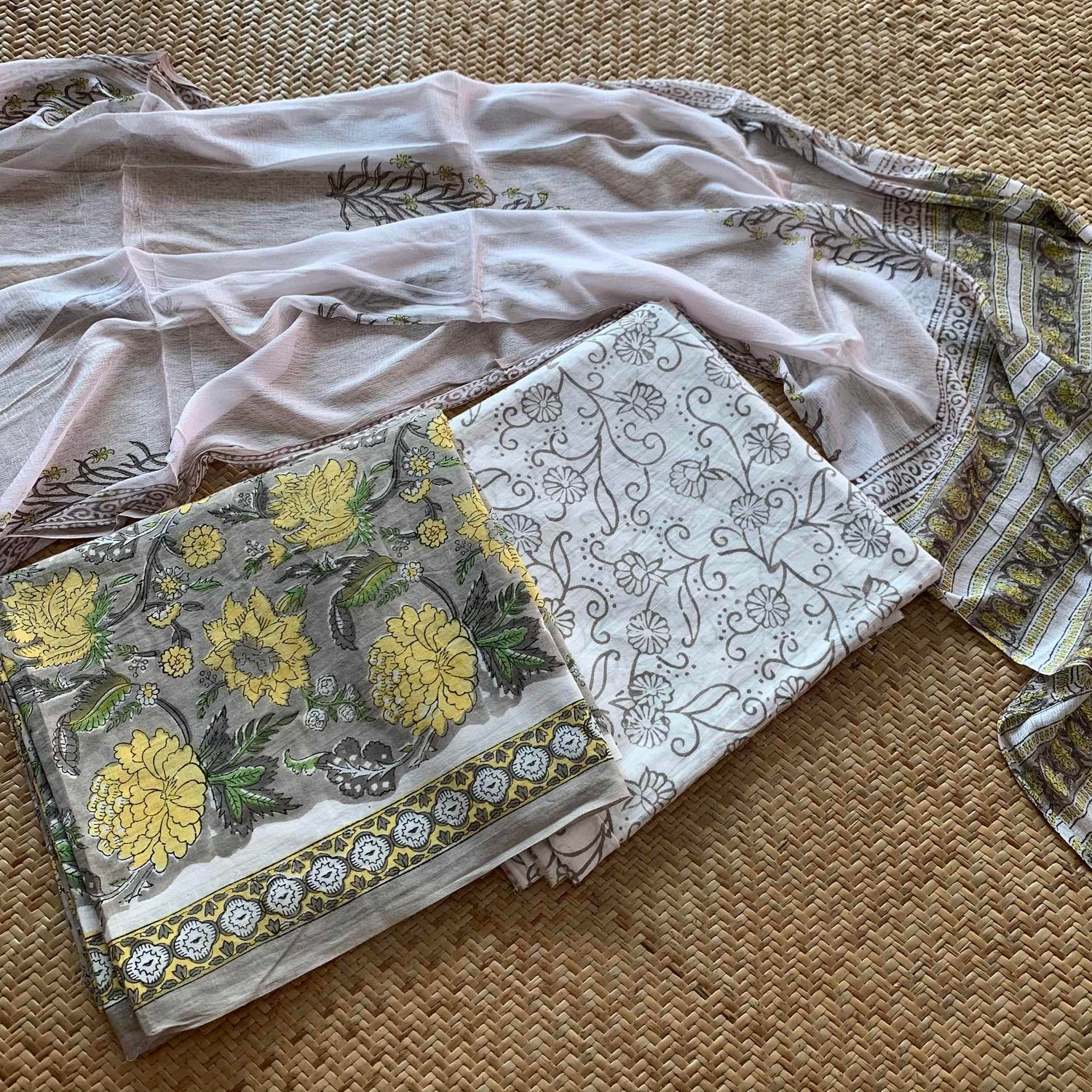 Mul Mul Cotton 3 Piece Salwar Suit Material, Grey