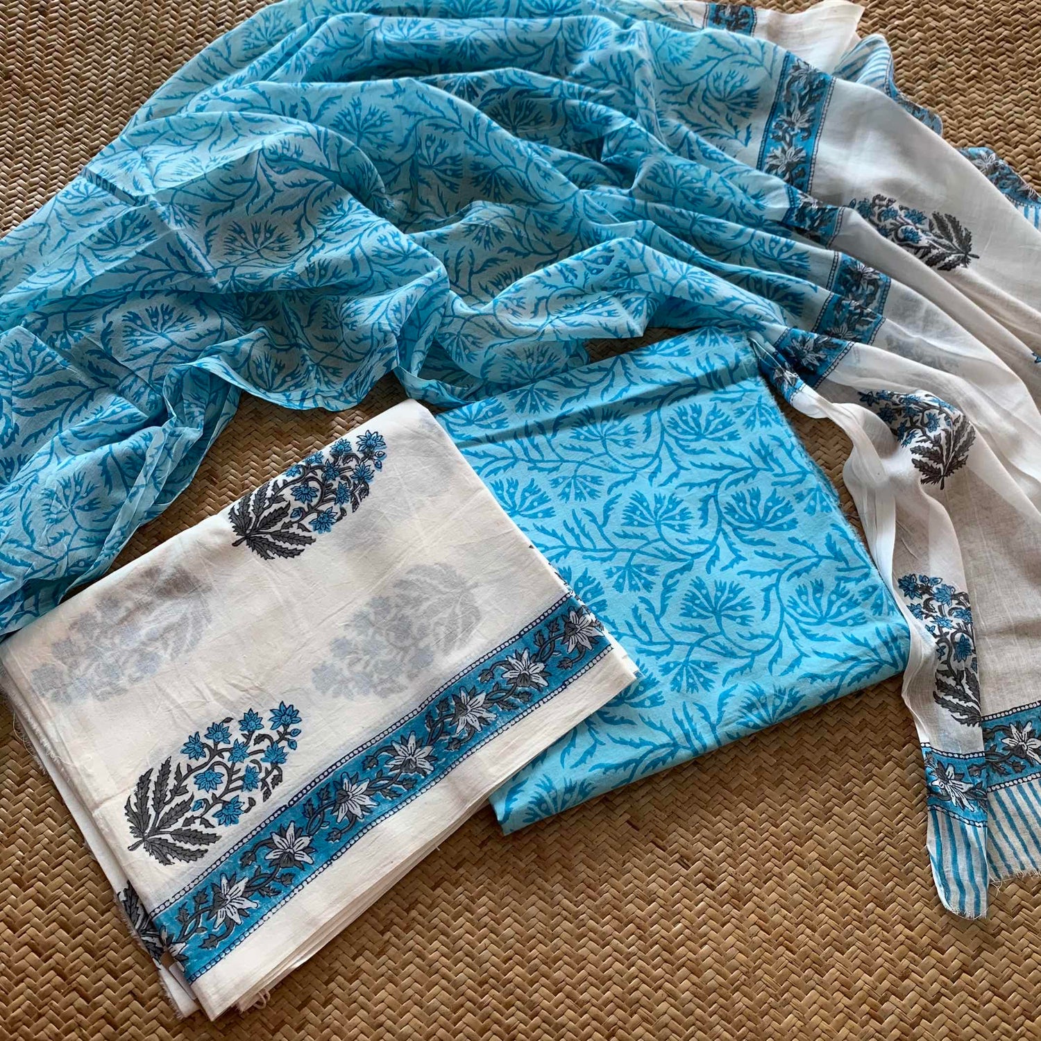 Mul Mul Cotton 3 Piece Salwar Suit Material, White