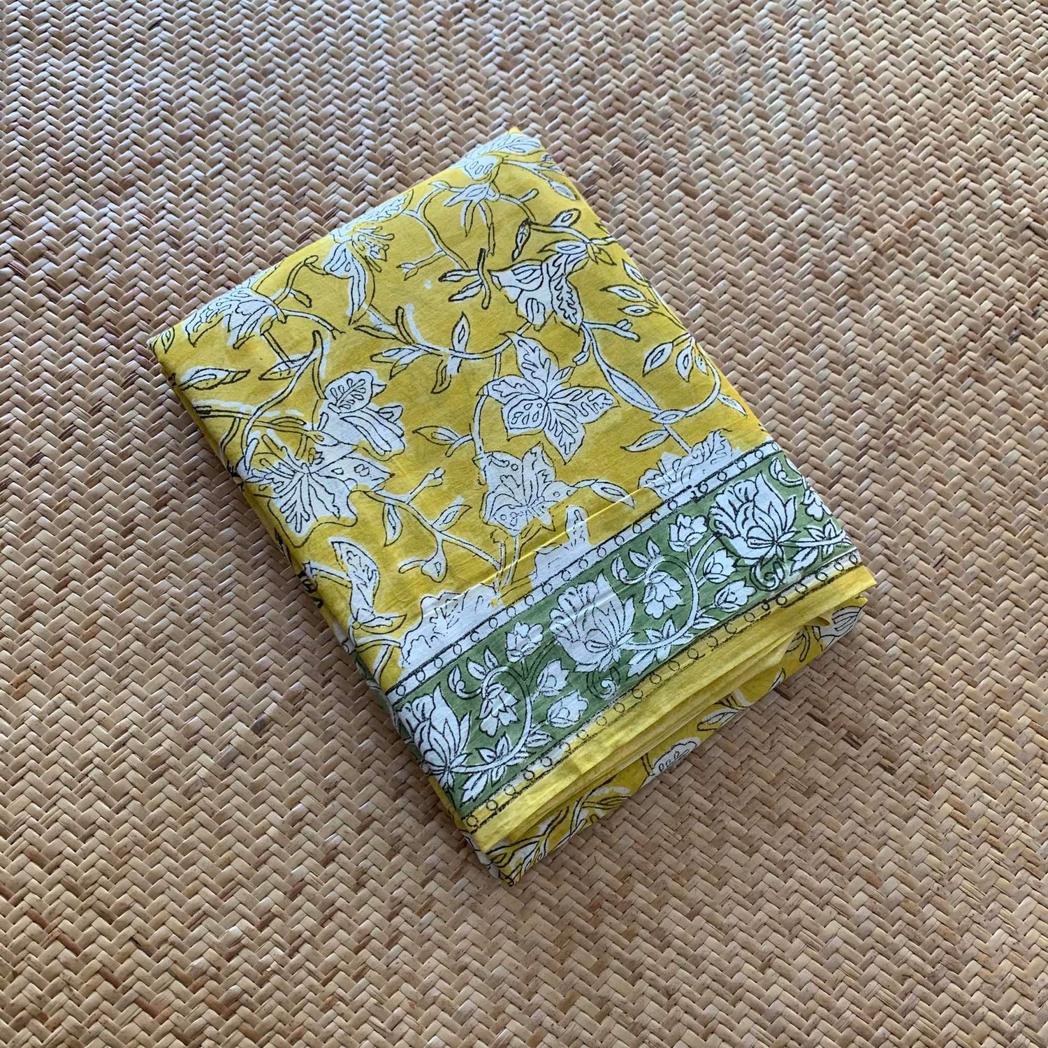 Mul Mul Cotton saree, Hand Block Printed, Yellow
