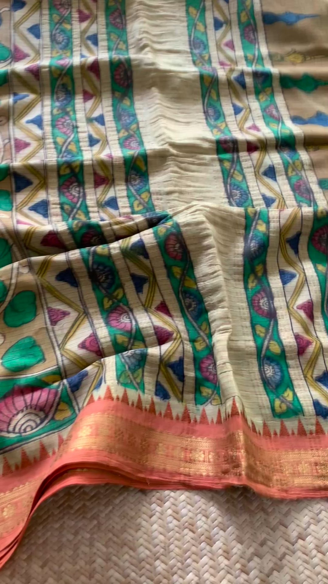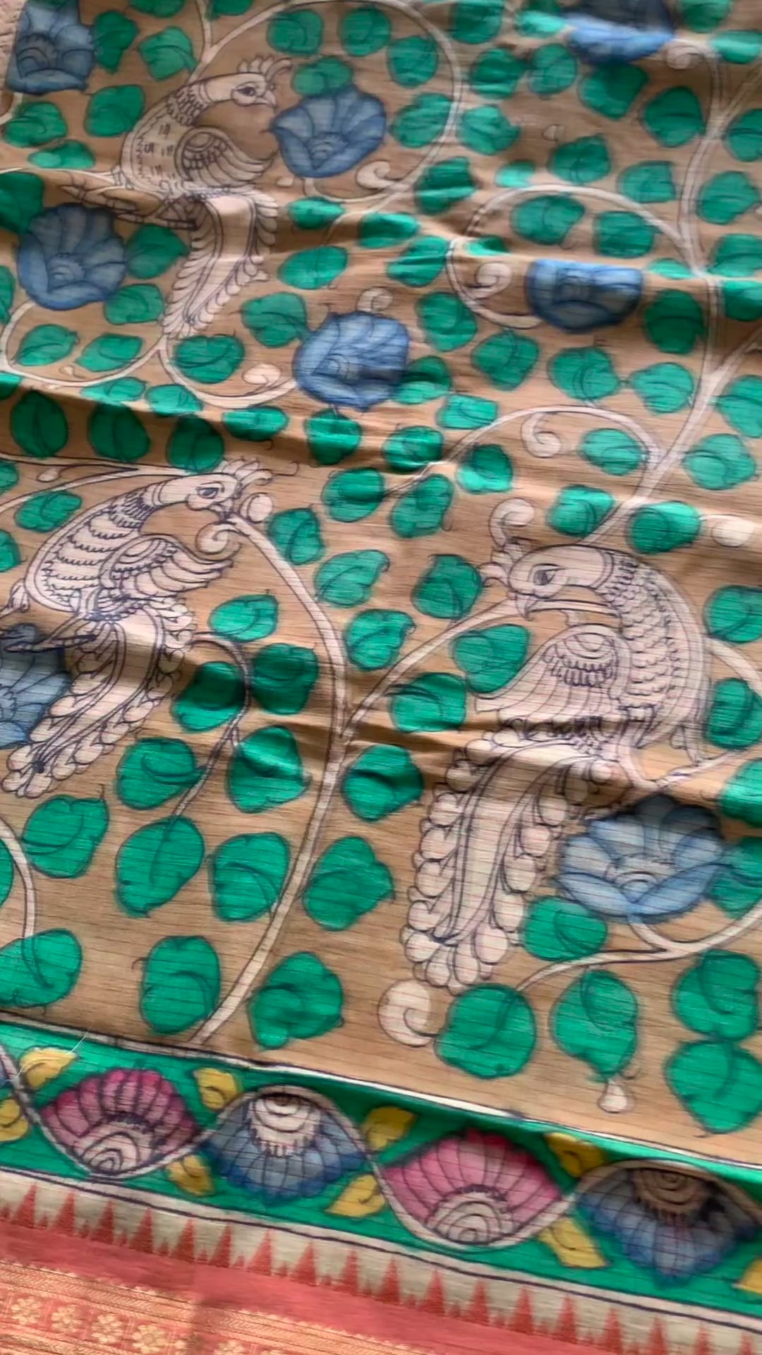 Villvam Kalamkari Hand Painted on a Madurai cotton saree.