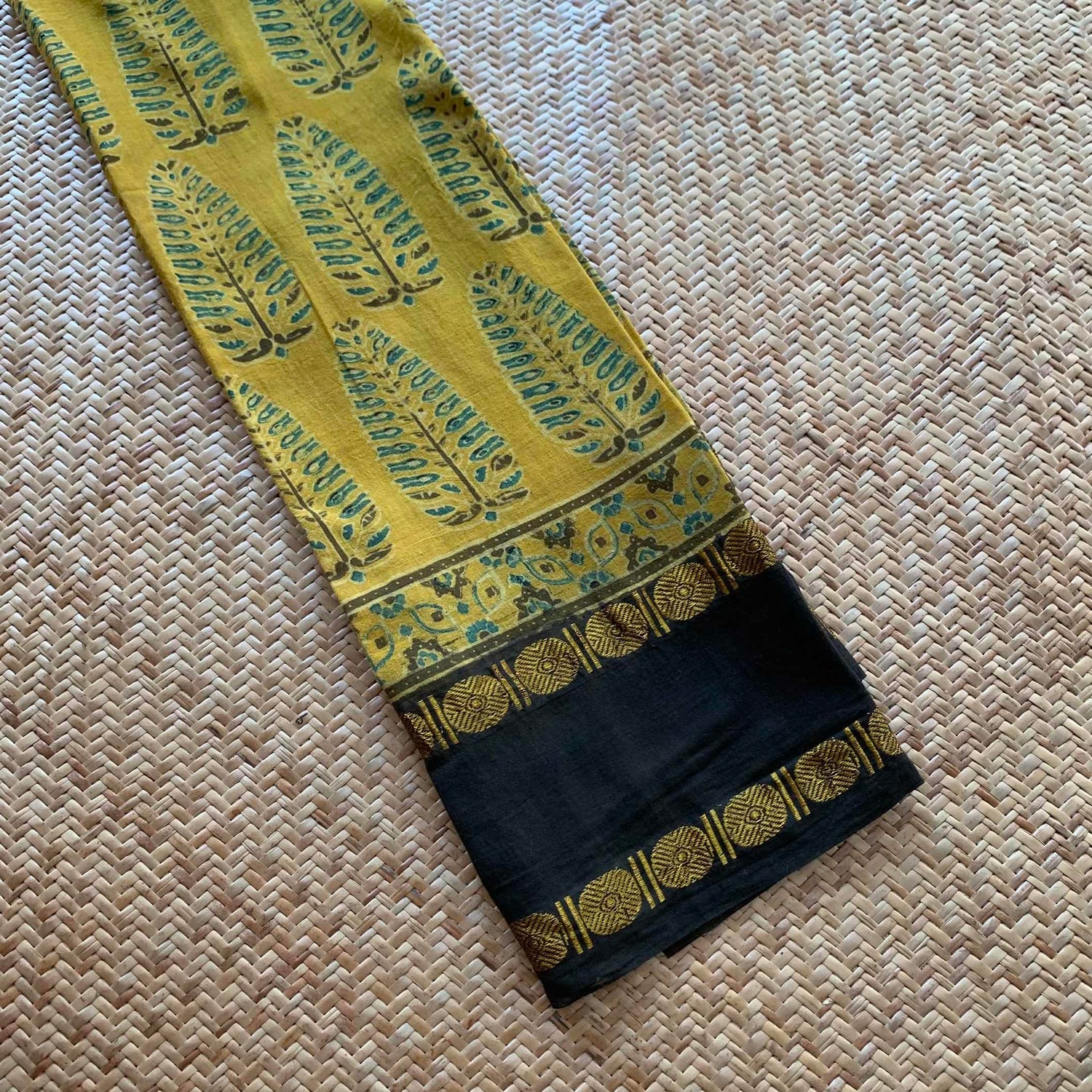 The white Fabrics are woven in Madurai and taken to Gujarat for Hand block printing and Natural dyeing.