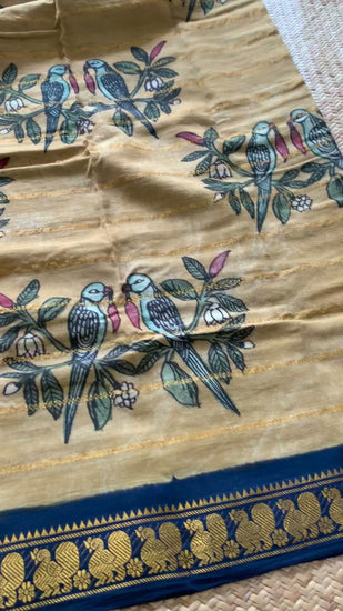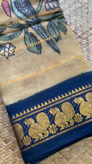 Villvam Kalamkari Hand Painted on a Madurai cotton saree.