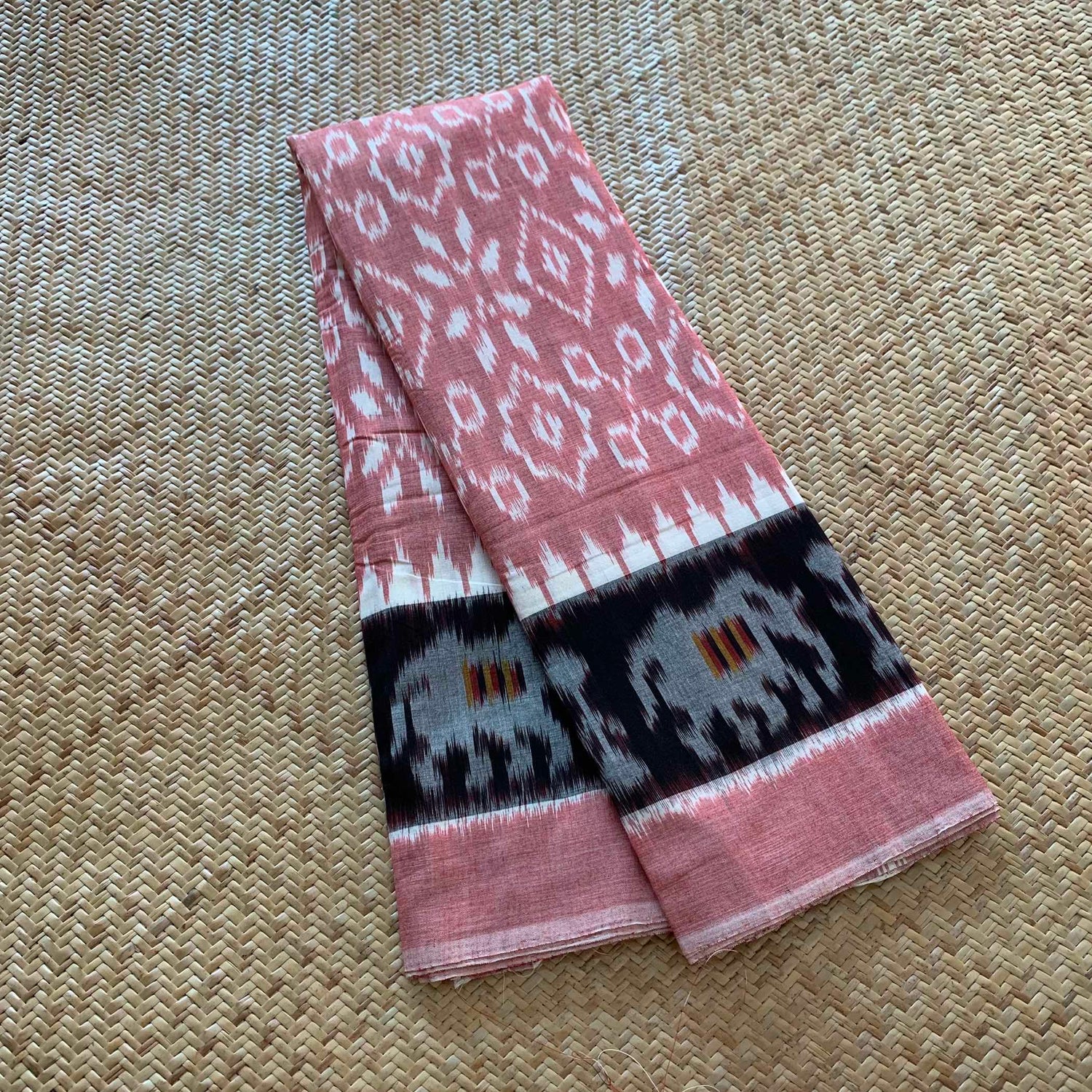 Salmon Pink Pochambally Ikkat Hand Woven Cotton Saree